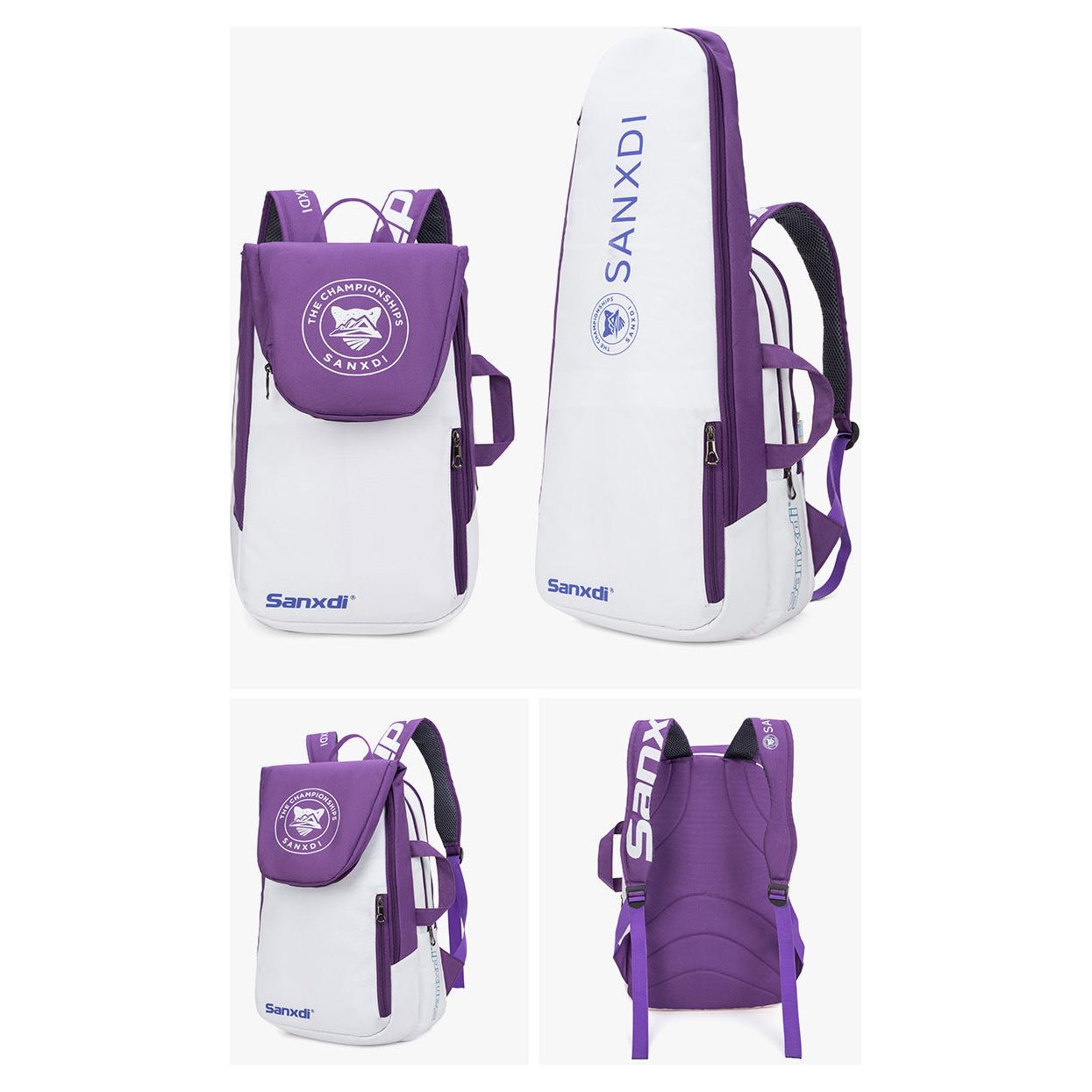 Purple and White Multifunctional Tennis & Badminton Backpack - Waterproof Racket Bag with Shoe Compartment