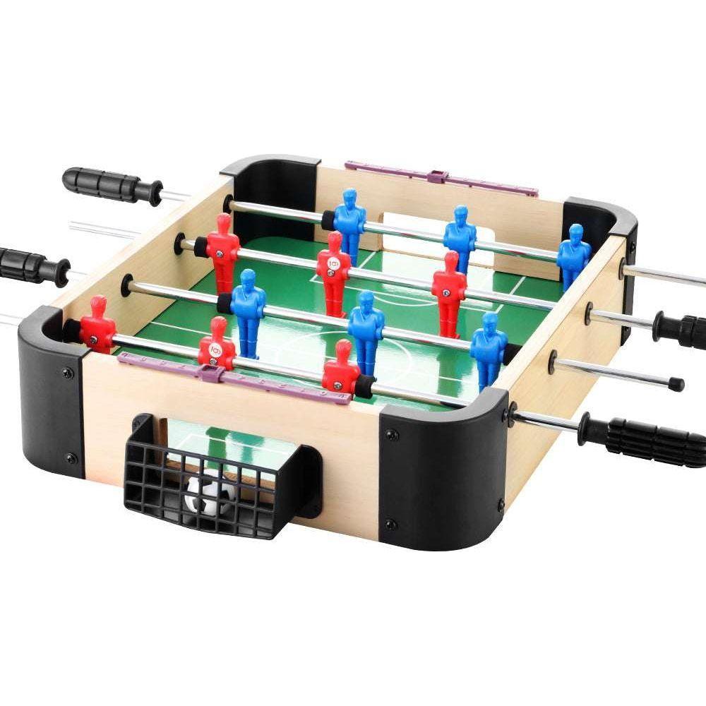 Host a fun-filled game night for your friends and family giving them hours of entertainment with our mini soccer table. It’s perfect for giving your game room or kids’ room an awesome upgrade and will make your family bonding times fun and parties lively. Long-lasting and durable, this mini soccer table is made from a premium quality MDF board. The players are built to be sturdy, and the portable and lightweight design of the soccer table makes it easy to fit in any room without taking too much space. You can even carry it along for a BBQ party, camping trip, or wherever you go. This mini soccer table comes with sturdy players, chrome steel rods with end caps and anti-slip handles, two bonus balls, a convenient score board, and a goal box for a real-like playing experience. No matter how old you are, this game is ideal for people of all age groups. So, without any hesitation, bring this incredible portable mini soccer table to have a great time with friends and family.