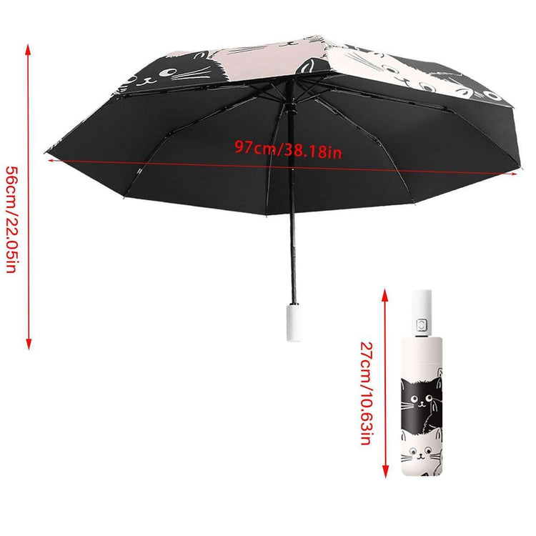 This sleek and stylish automatic folding umbrella showcases a delightful black and white cat design, offering a playful yet practical accessory for all weather conditions. Whether it's sunny or rainy, this umbrella provides excellent protection from the elements. Its durable, UV-blocking fabric ensures safe sun protection, while the reinforced frame provides wind resistance during stormy days. Lightweight and compact, it is easy to carry and fits comfortably into most bags, making it an ideal companion for travel, commuting, or daily errands. The automatic open/close mechanism adds further convenience for quick use.