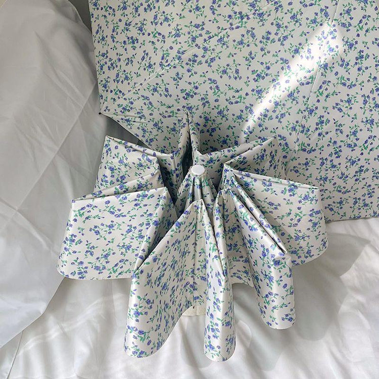 Blue Floral Mini 5-Fold Umbrella - Portable, Anti-UV, Black Glue Coating