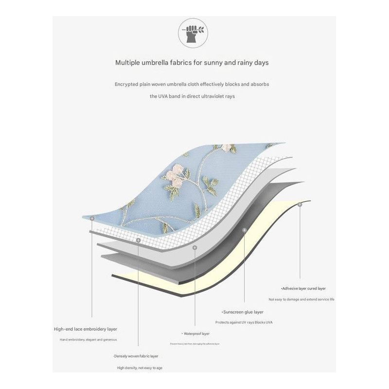 Our Embroidered Lace Umbrella combines beauty and functionality in one exquisite package. With its delicate lace detailing, superior UV protection, and durable construction, it's the perfect accessory for any woman who wants to stay protected in style. Add a touch of elegance to your life with our Embroidered Lace Umbrella!