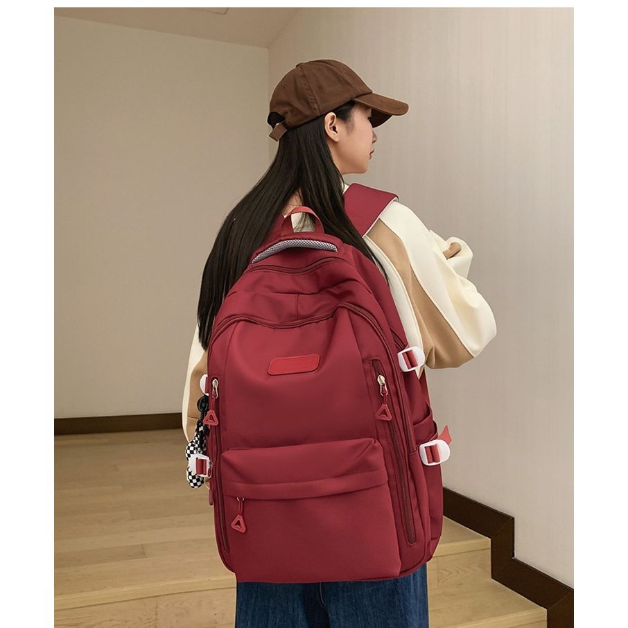 Carry your essentials in style and comfort with this Large Capacity Nylon Backpack. Designed for versatility and durability, this backpack is perfect for students, commuters, and travelers alike. It features a spacious main compartment capable of holding a tablet computer, A4 magazines, a short umbrella, phone, power bank, and more. Crafted from durable nylon fabric, it's built to withstand daily wear. The backpack includes multiple thoughtfully designed pockets: a front zippered pocket, side pockets ideal for water bottles or small umbrellas, and a secure back zippered pocket for valuables. Adjustable shoulder straps ensure a comfortable fit, while triangular reinforcements add to its durability. Smooth zippers and a convenient top handle complete this practical and stylish backpack.