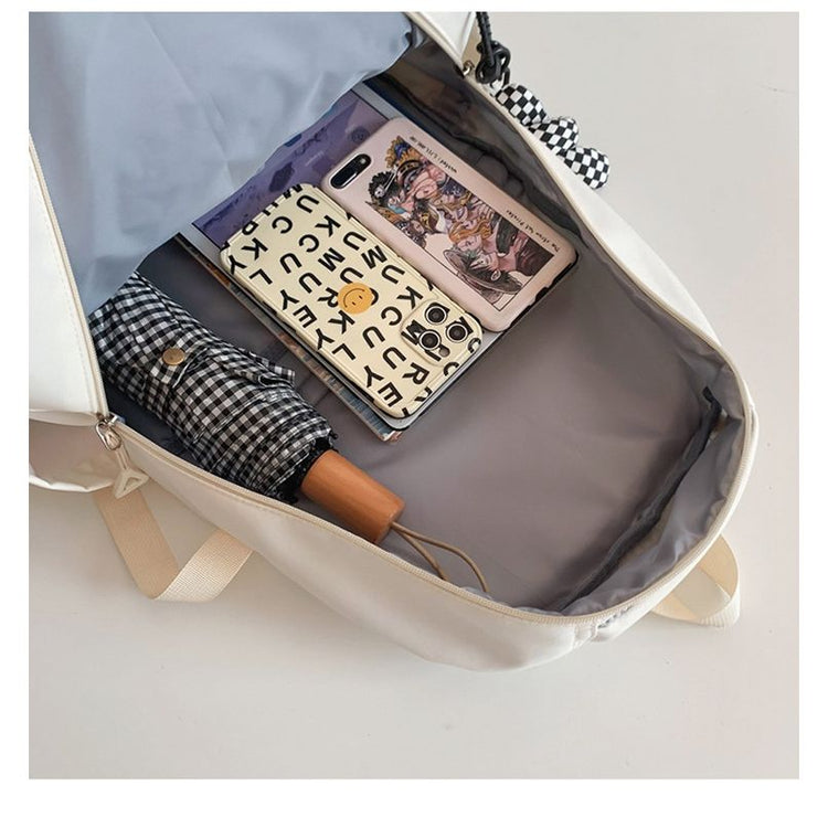 Carry your essentials in style and comfort with this Large Capacity Nylon Backpack. Designed for versatility and durability, this backpack is perfect for students, commuters, and travelers alike. It features a spacious main compartment capable of holding a tablet computer, A4 magazines, a short umbrella, phone, power bank, and more. Crafted from durable nylon fabric, it's built to withstand daily wear. The backpack includes multiple thoughtfully designed pockets: a front zippered pocket, side pockets ideal for water bottles or small umbrellas, and a secure back zippered pocket for valuables. Adjustable shoulder straps ensure a comfortable fit, while triangular reinforcements add to its durability. Smooth zippers and a convenient top handle complete this practical and stylish backpack.