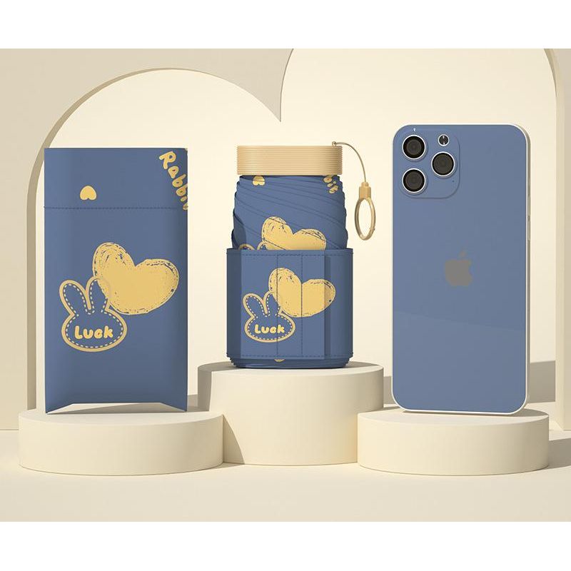 Ultra-Compact 7-Fold Folding Umbrella - UPF50+ Sun Protection & Portable Clip Design(Dark Blue)