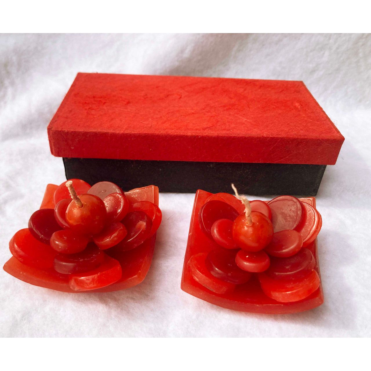 2 Red Lotus Floating Candles in Red Black Gift Box Set Birthday Xmas Valentine Mothers Day Gift Present
