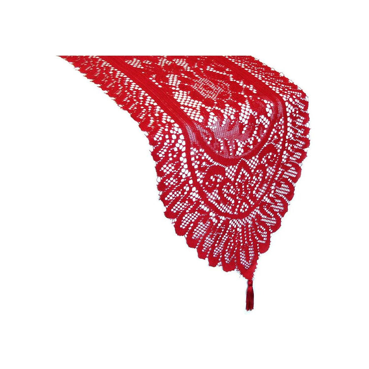 This Logan Red Lace Table Runner Choose Your Size can be a great way to accent tables and add visual interest to a room. Table runners can protect a table's surface from scratches, stains, and wear and tear. This table runner features timeless lace design in vibrant colour tone that will easily adorn your dining or coffee tables. It is made from quality Polyester fabric with easy care properties.