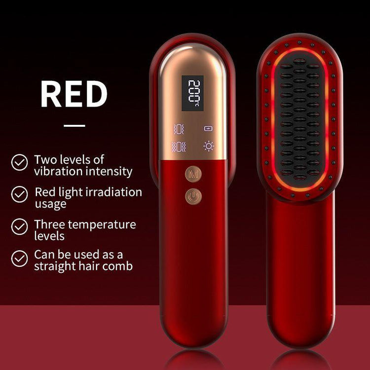 Red Mini Rechargeable Ionic Hair Straightening Comb | Portable Wireless Vibration Massage Brush for Frizz-Free, Smooth Hair