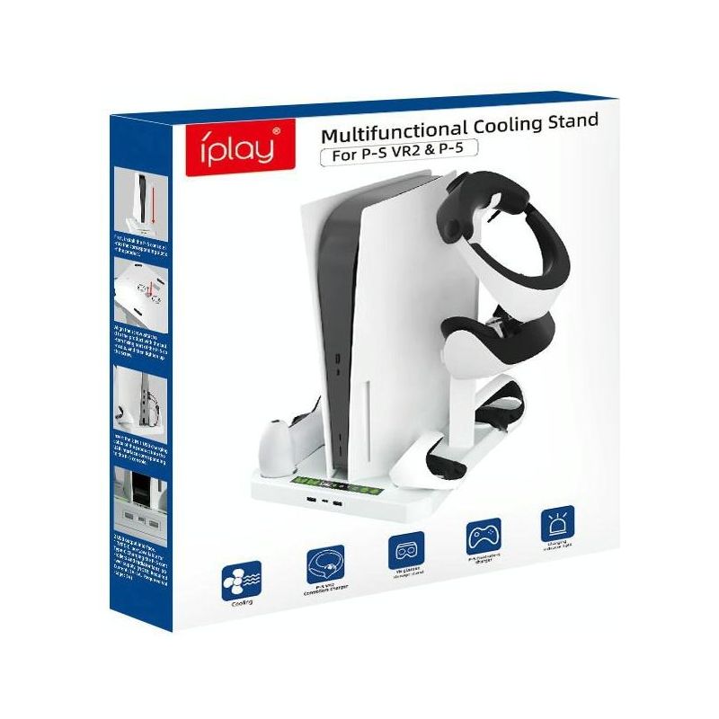• 1 x For Ps5 Ipaly Host Multifunctional Cooling Base Vr2 Handle Charging Stand Disc Storage Rack White