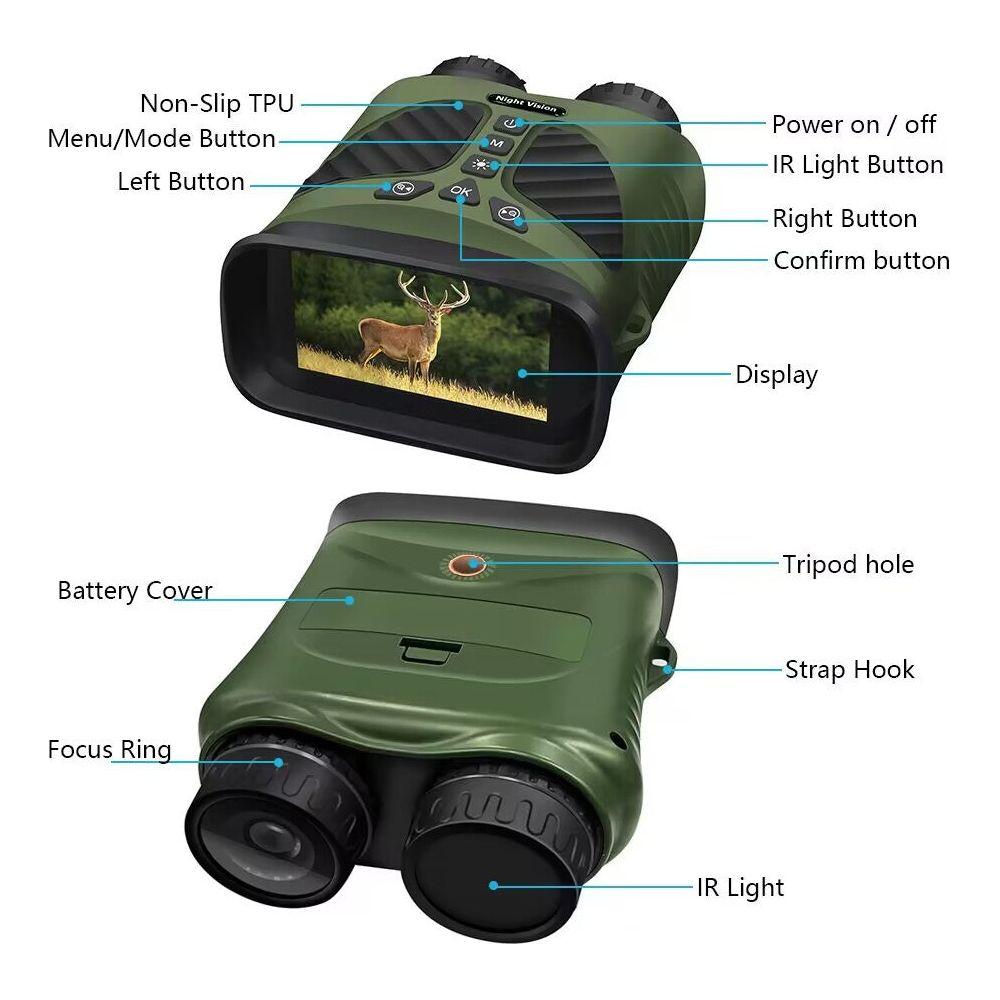 Whether you're camping, hunting, or observing wildlife, these binoculars combine advanced features with user-friendly operation. The built-in rechargeable battery and lightweight design make it the ideal tool for exploring at night.