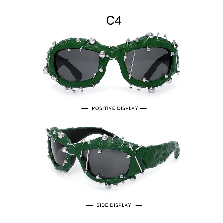 - Unique Punk Aesthetic: Heavily embellished frames with prominent spikes and studs deliver a bold, eye-catching statement that stands out from the crowd.