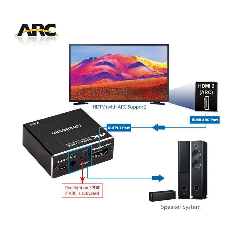 Simplecom CM425 HDMI 2.0 Audio Extractor Optical SPDIF + 3.5mm Stereo with ARC 4K@60Hz