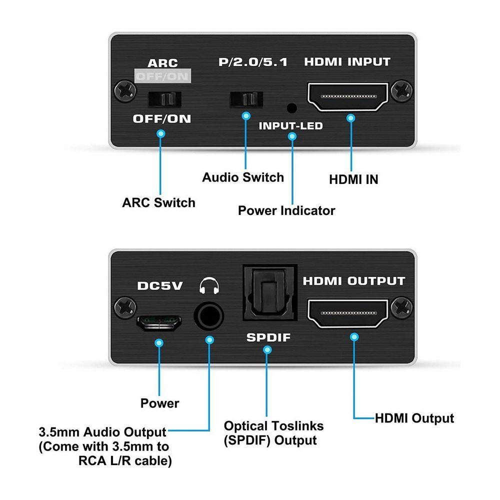 CM425 is an upgraded HDMI 2.0 Audio Extractor, supports video resolution up to 4K@60Hz and audio output through Optical SPDIF or 3.5mm stereo. It also supports ARC (Audio Return Channel), so you can connect it to an ARC compatible TV directly. It’s the ideal solution when you would like to output the audio through an external speaker system with analog or optical input, also when an older audio system without HDMI input.