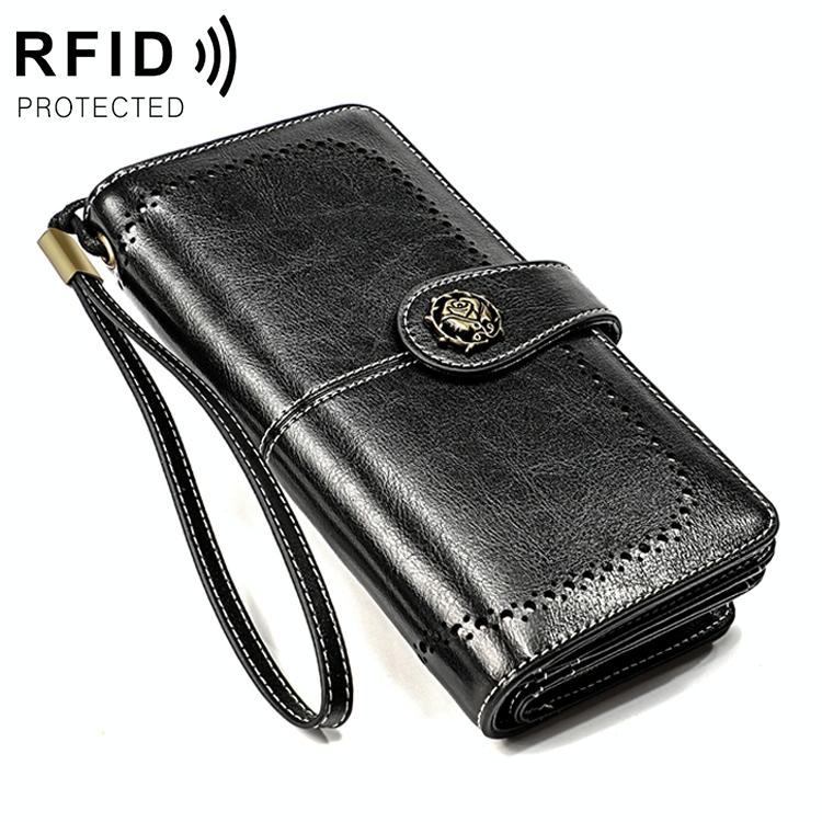 3556 Large Capacity Long Multi-function Anti-magnetic Rfid Wallet Clutch for Women with Card Slots - Black