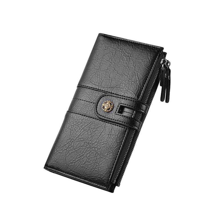 - Elegant & Versatile Style: Featuring a timeless retro design with a secure snap-button strap, this wallet is perfect for both business and casual occasions. Its slim profile allows it to be used as a standalone clutch or fit comfortably in a bag.