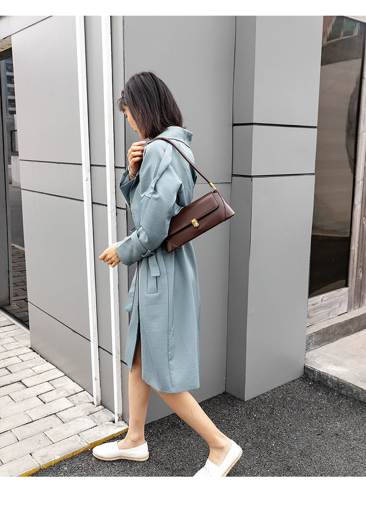 Brown Elegant Vintage Baguette Shoulder Bag - Chic PU Leather Underarm Purse with Gold Clasp