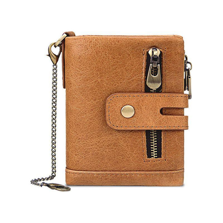 Brown Genuine Leather Tri-Fold Wallet - Fashionable Multi-Card Men's and Women's Wallet