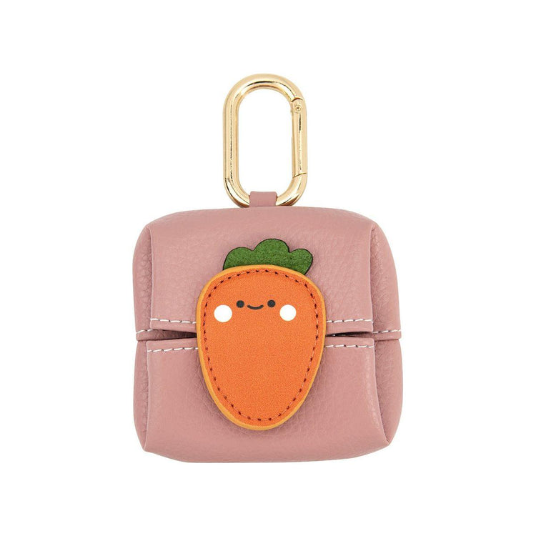 Carrot Pattern Pink Cute Multifunctional Mini Leather Coin Purse with Keychain for Lipstick, Bluetooth Earbuds, and Small Essentials