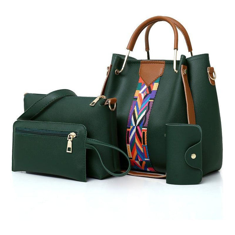 Dark Green Elegant 4-Piece Women's Handbag Set - Stylish PU Leather, Shoulder Bag, Clutch, and Wallet for Every Occasion