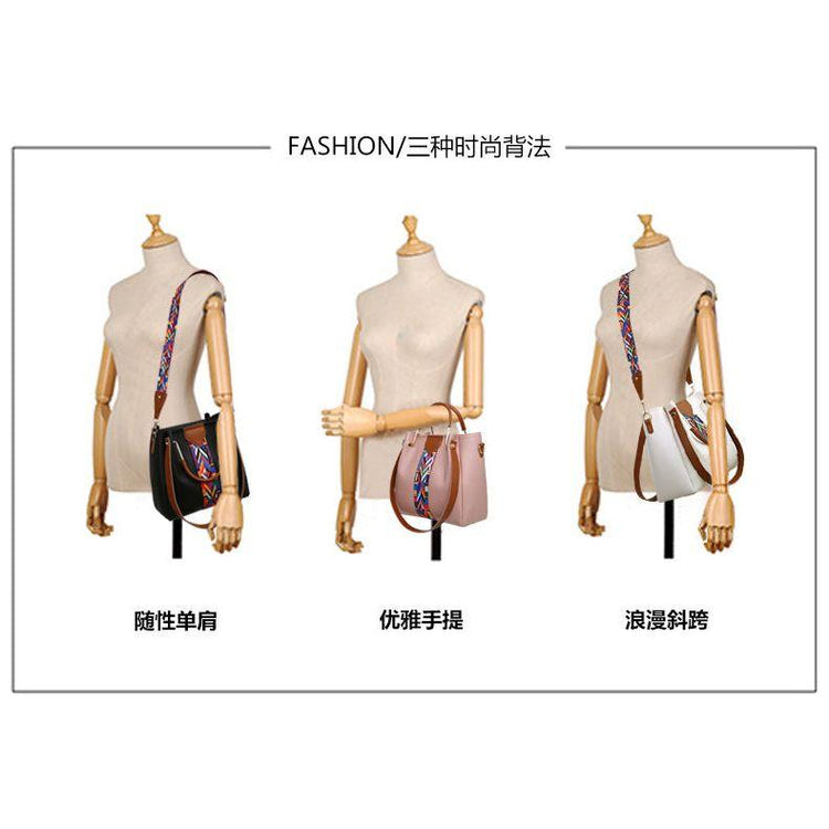 • Design: Features a vibrant geometric shoulder strap for a unique style statement.