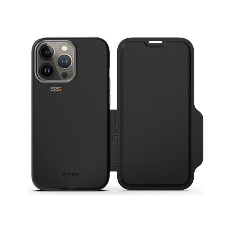 EFM Monaco Leather Wallet Case Armour with D3O 5G Signal Plus for iPhone 13 Pro (6.1" Pro) - Black