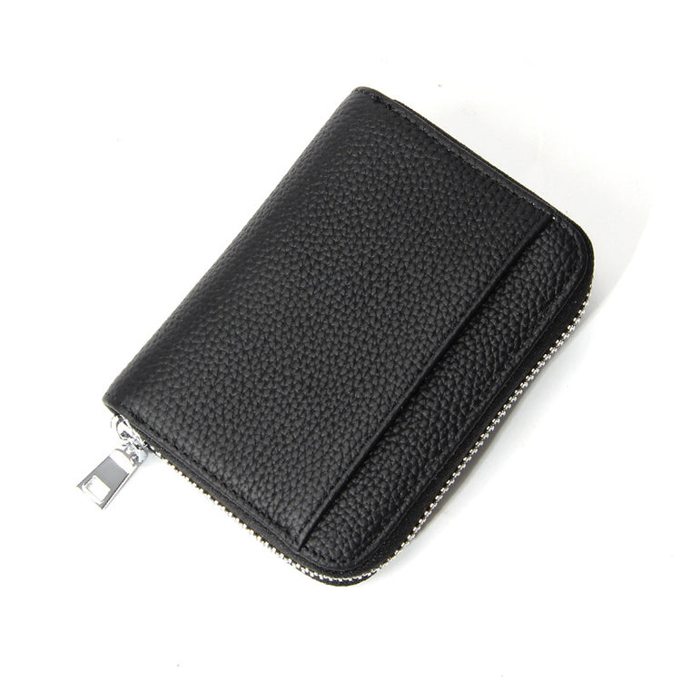 Secure your essentials in style with our Genuine Leather RFID Blocking Wallet. This compact yet spacious wallet is crafted from soft, top-layer cowhide with a sophisticated lychee grain texture and is designed to protect your personal information from electronic theft. The interior features an accordion-style design with multiple compartments for cards, cash, coins, and IDs, allowing for easy organization and access. The wallet's through-bottom design can accommodate banknotes without folding. A high-quality metal zipper ensures your belongings are kept secure, while the uniform and durable stitching guarantees longevity. This wallet is the perfect blend of fashion, function, and security for your daily needs.