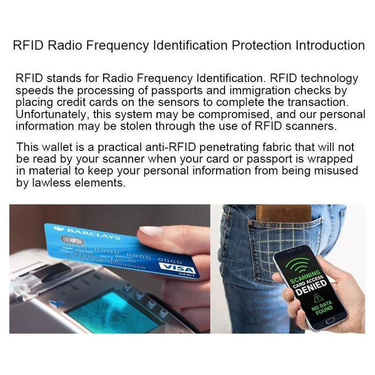 • Provides RFID wallet protection during holiday shopping and RFID blocking during international travel.
