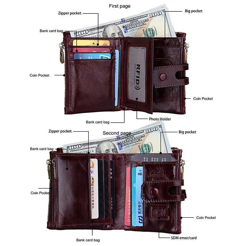 • 1 x Cowhide Leather Crazy Horse Texture Rfid Blocking Wallet for Men