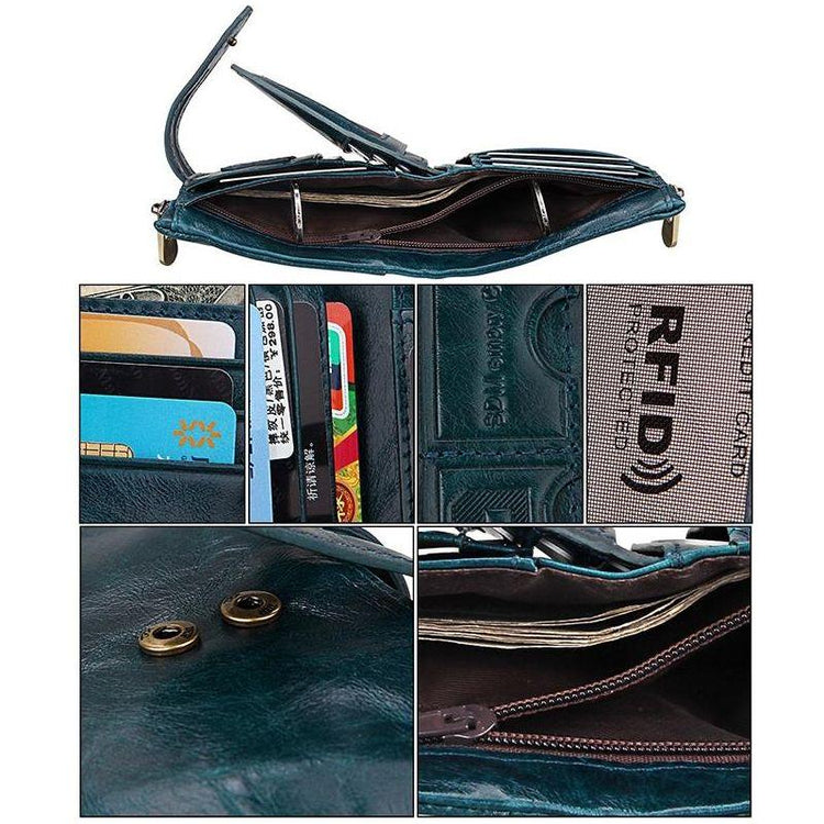 Men Rfid Blocking Cowhide Leather Wallet - Crazy Horse Texture