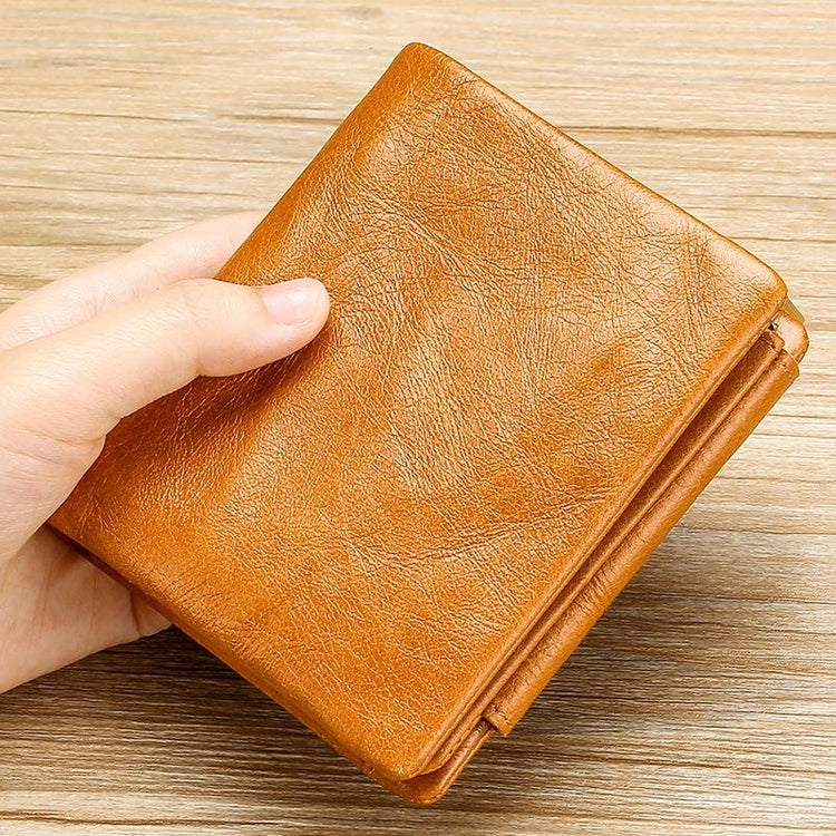 Men Rfid Leather Tri-fold Wallet - Genuine Leather - Brown