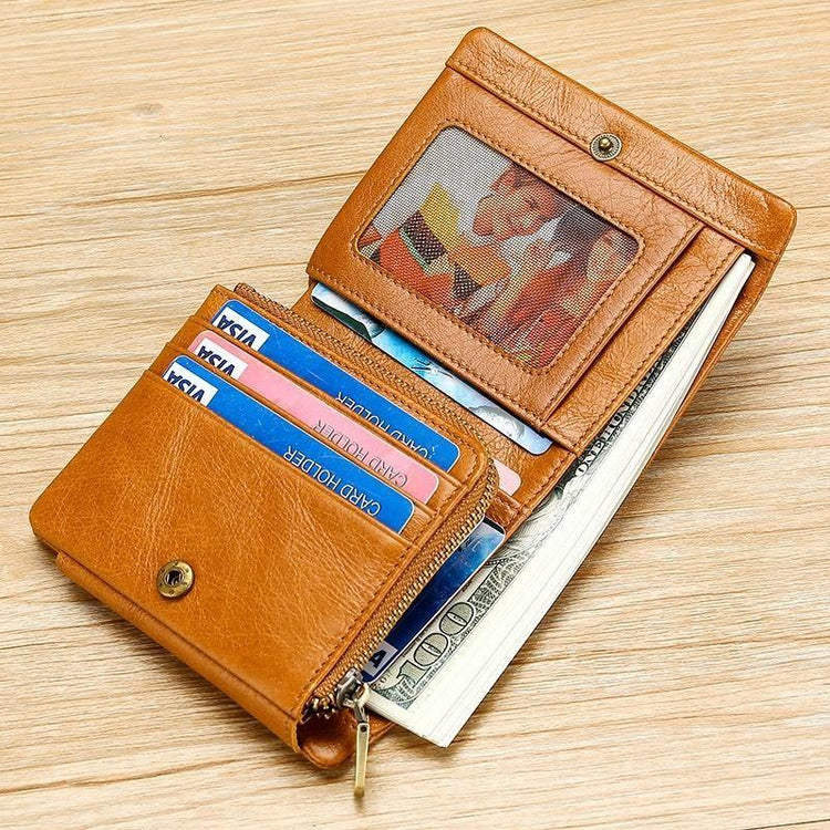 Multi-Functional Oil Wax Leather Rfid Wallet