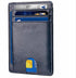 Slim Minimalist Leather Wallet with ID Window & RFID Blocking - Holds 12 Cards & Cash(Navy blue)