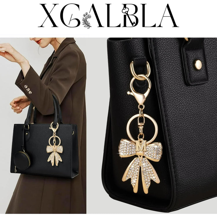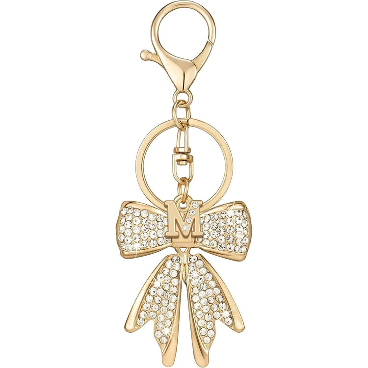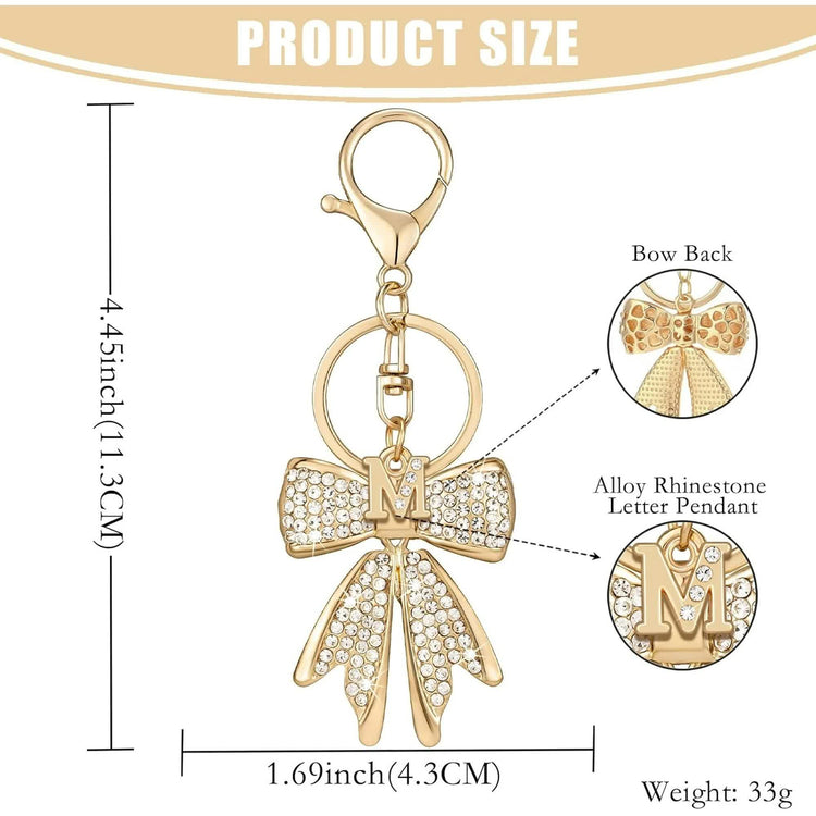Sparkly Cute Initial Letter Rhinestone Bow Keychain for Women Gold Tone Bag Charms Coquette Aesthetic Purse Charms