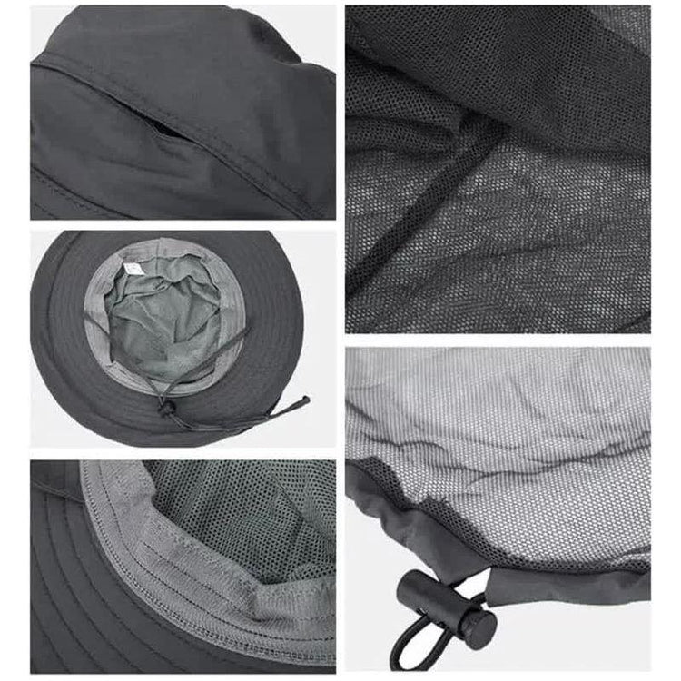 Grey Outdoor Mosquito Net Hat - Sun Protection and Insect Repellent Bucket Hat