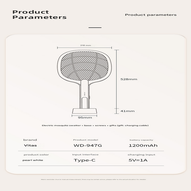 • 1 x 2-in-1 Electric Bug Zapper Racket