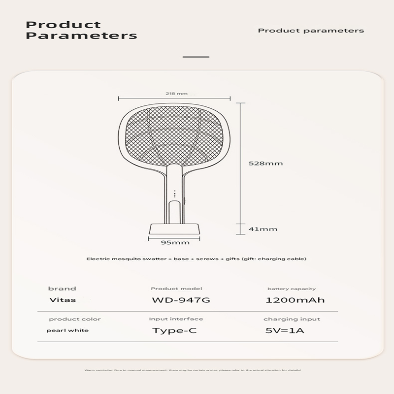 - Dual Mode Functionality: Use it as a powerful handheld racket to actively eliminate flies and bugs on contact. When you're done, simply place it in the charging base to activate the automatic UV mosquito lamp mode, which works silently to protect you while you work or sleep.