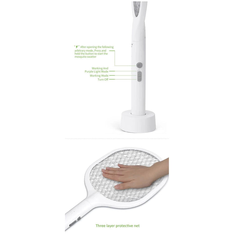 - 2-in-1 Functionality: Features both a fly swatter and mosquito zapper, allowing you to quickly and efficiently eliminate flying pests.