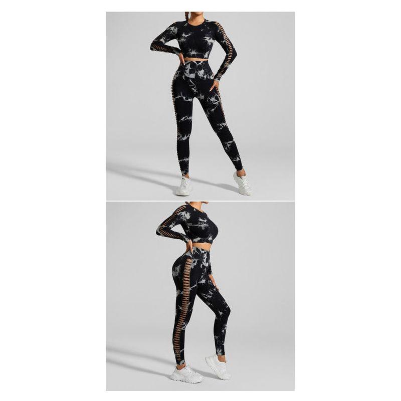 Get ready for your workout sessions with this stylish and functional Tie-Dye Yoga Set. Featuring long sleeves and high-waisted leggings, this set is designed to lift your buttocks and enhance your figure while providing maximum comfort. The seamless design ensures a smooth fit with no irritation, and the breathable fabric allows for ease of movement during yoga, pilates, and other fitness routines.