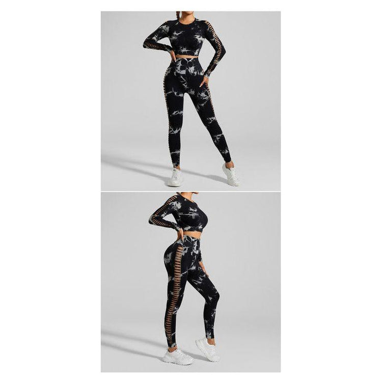 Tie-Dye Yoga Set Long Sleeve Butt Lift Leggings Seamless Workout Training Gym Clothes