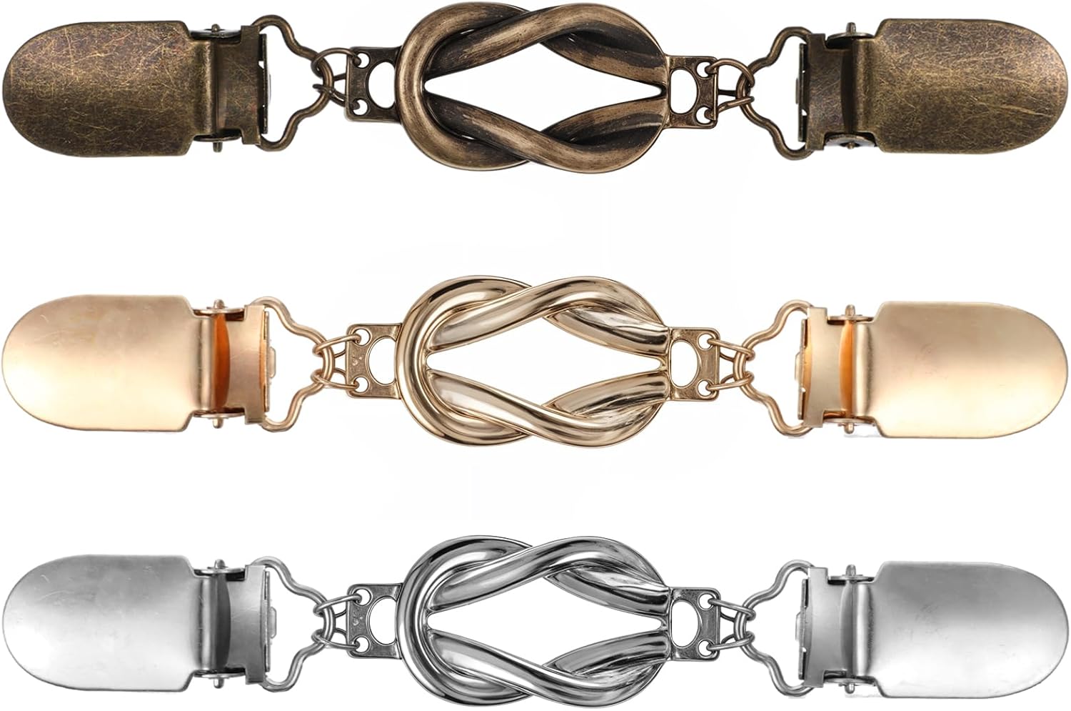 Introducing our 3pcs Cinch Clip Set, designed to provide both functionality and style to your wardrobe. These versatile clips are perfect for holding your sweater together, ensuring a secure and polished look. Made from high-quality aluminum alloy, these cinch clips are lightweight yet durable, offering long-lasting use without the risk of rusting or breaking.