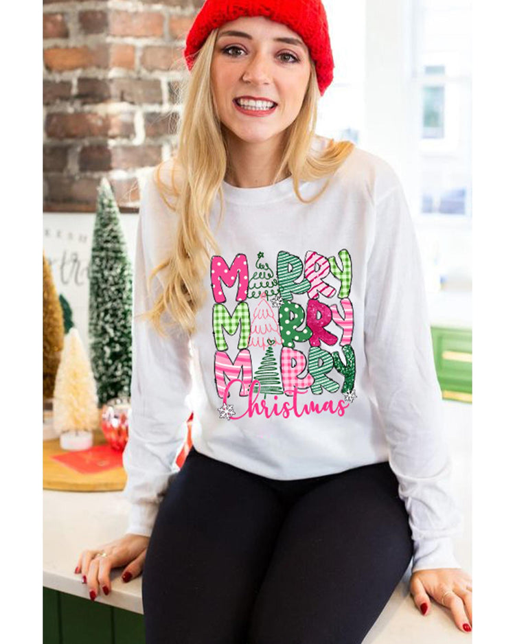 - Beige MERRY Christmas Printed Drop Shoulder Pullover Sweatshirt