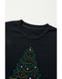 • Black Rhinestone Christmas Tree Round Neck Graphic Tee