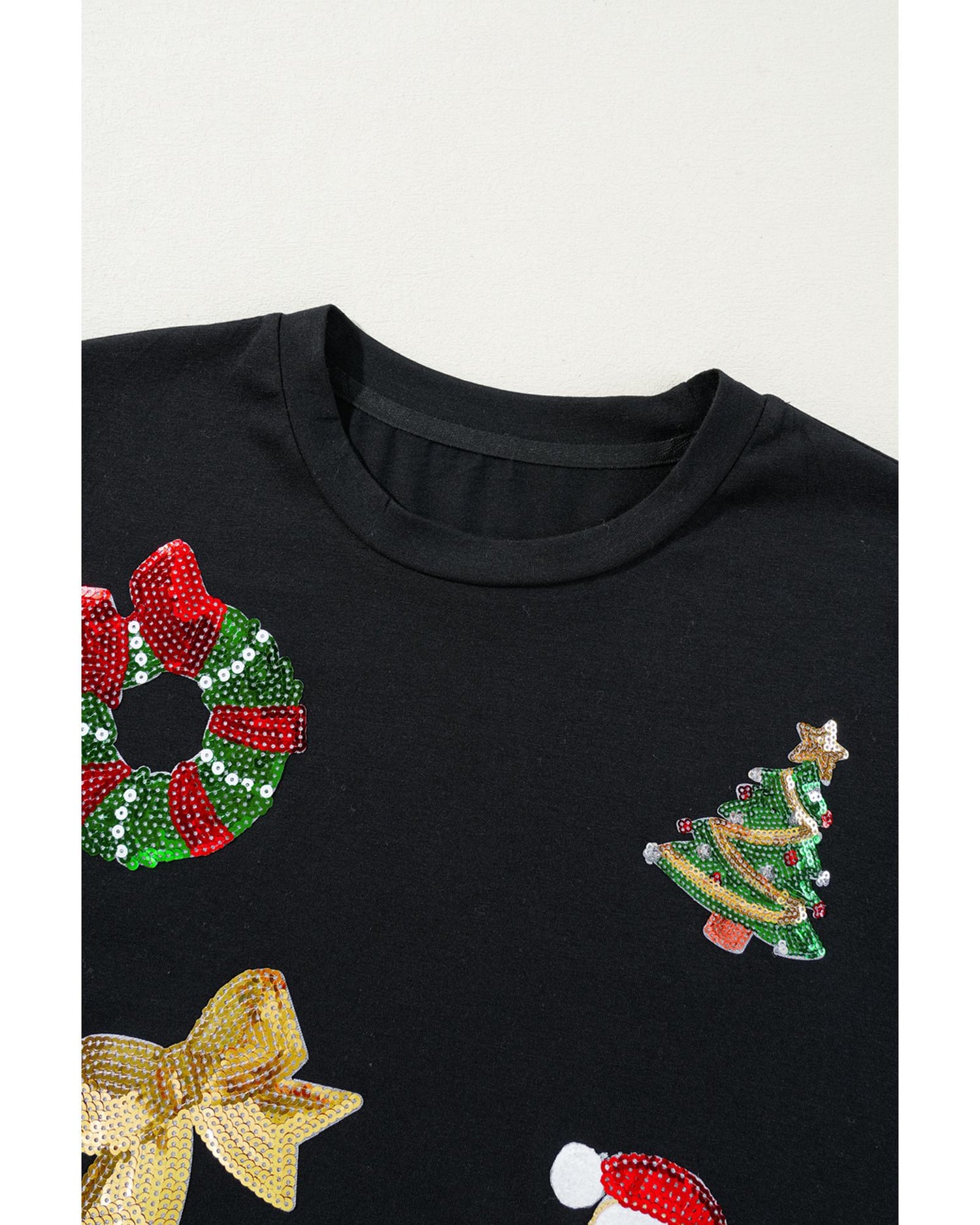 Black Sequin Christmas Essentials Graphic Crewneck T Shirt - M