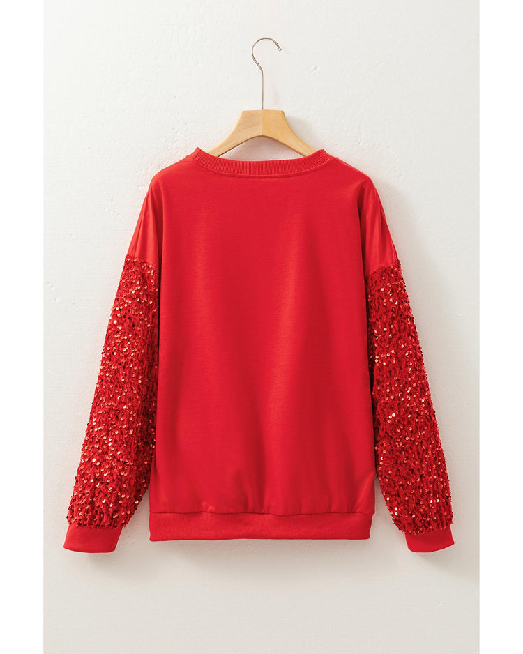 • Fiery Red Sequined Santa Claus Long Sleeve Christmas Sweatshirt