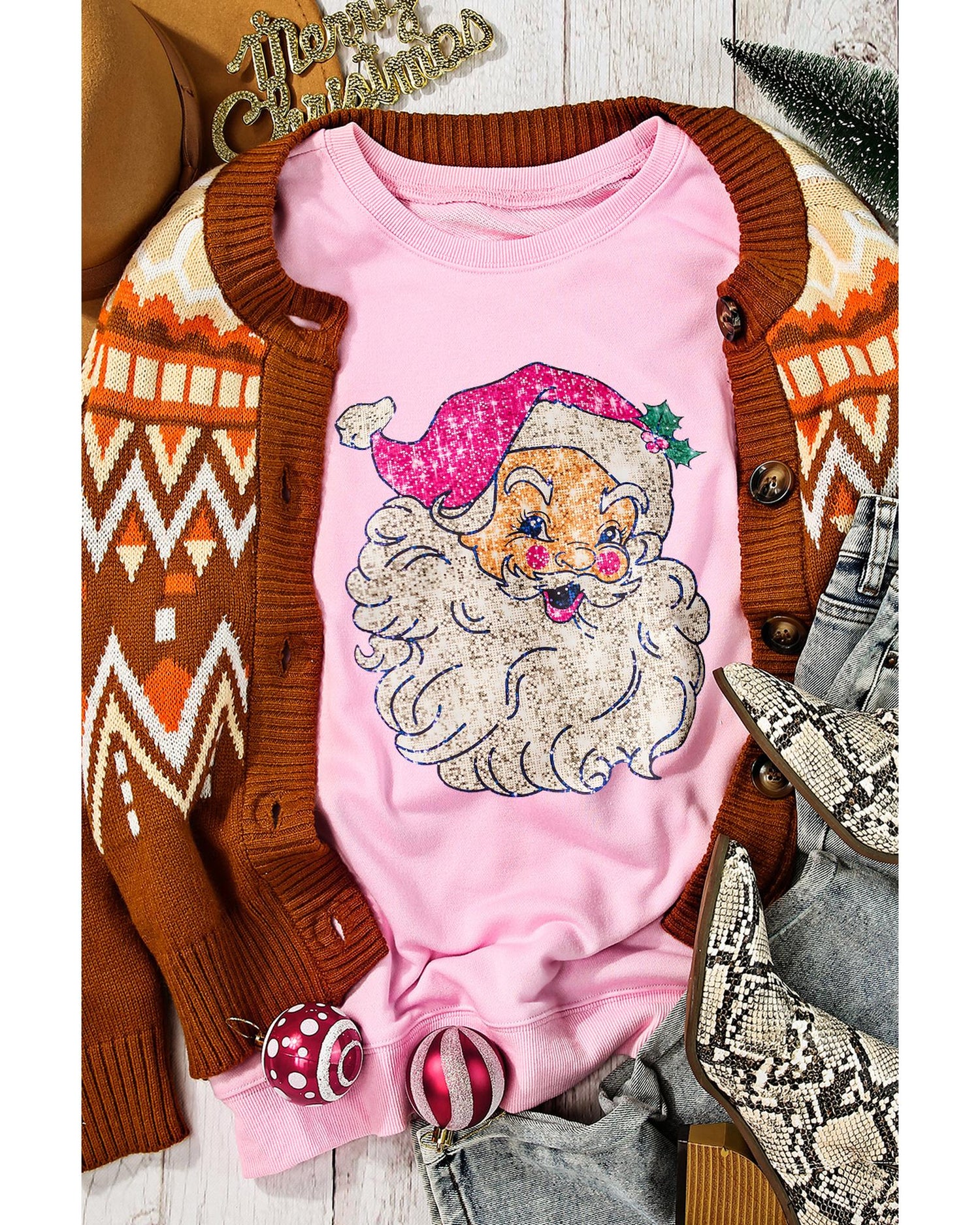 Pink Bold Christmas Claus Graphic Drop Shoulder Sweatshirt - L