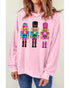 Pink Cute Nutcracker Printed Drop Shoulder Christmas Sweatshirt - S