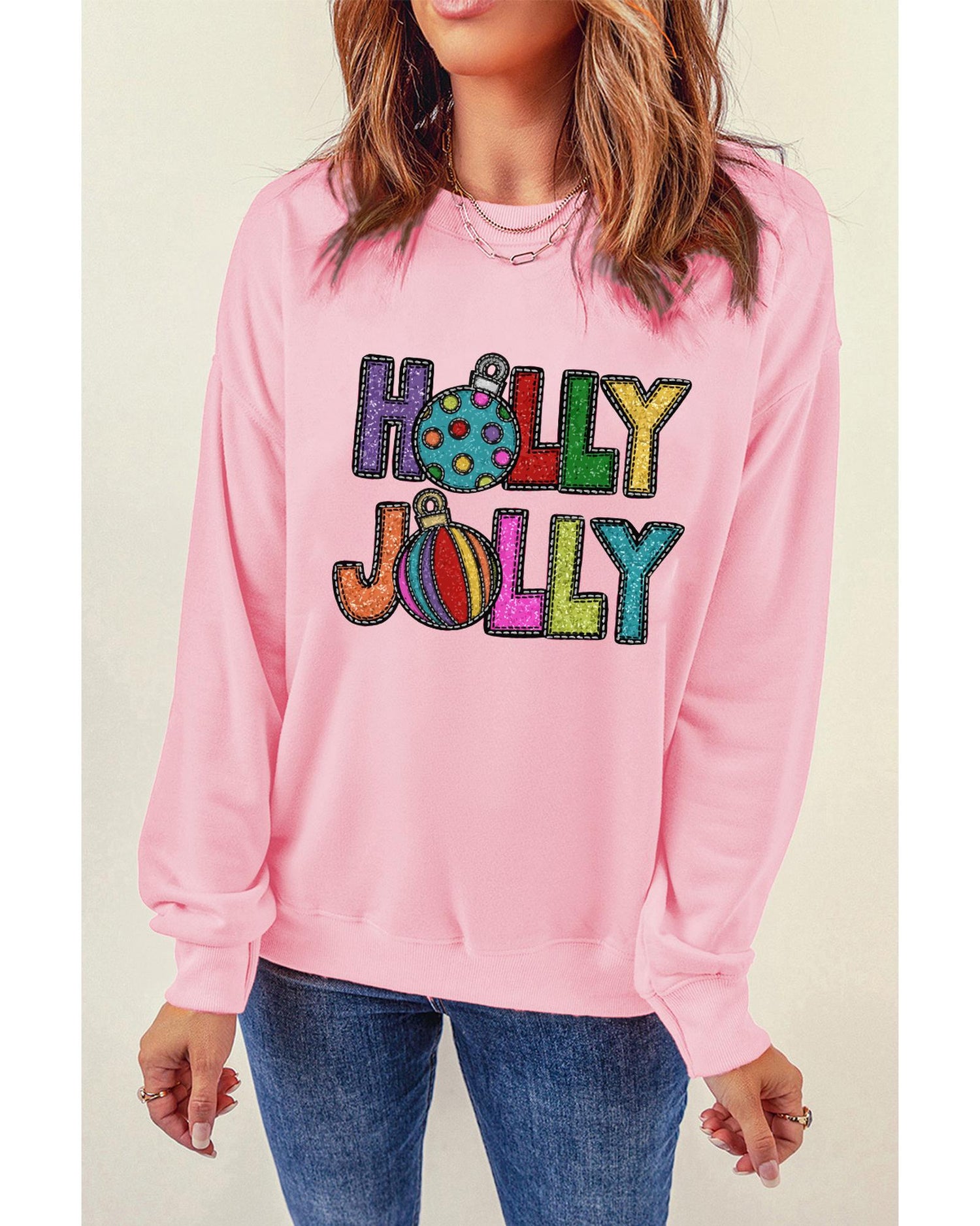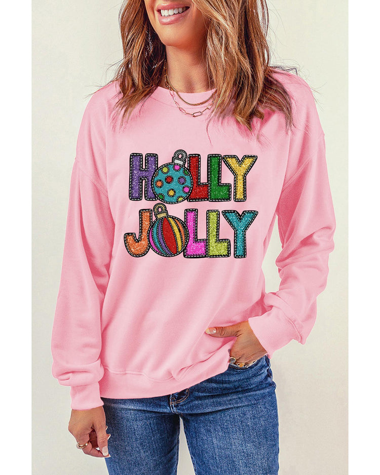 - Pink HOLLY JOLLY Christmas Festive Letter Graphic Sweatshirt
