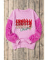 Pink Merry Christmas Graphic Sequin Sleeve Patchwork Top - M
