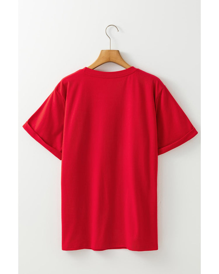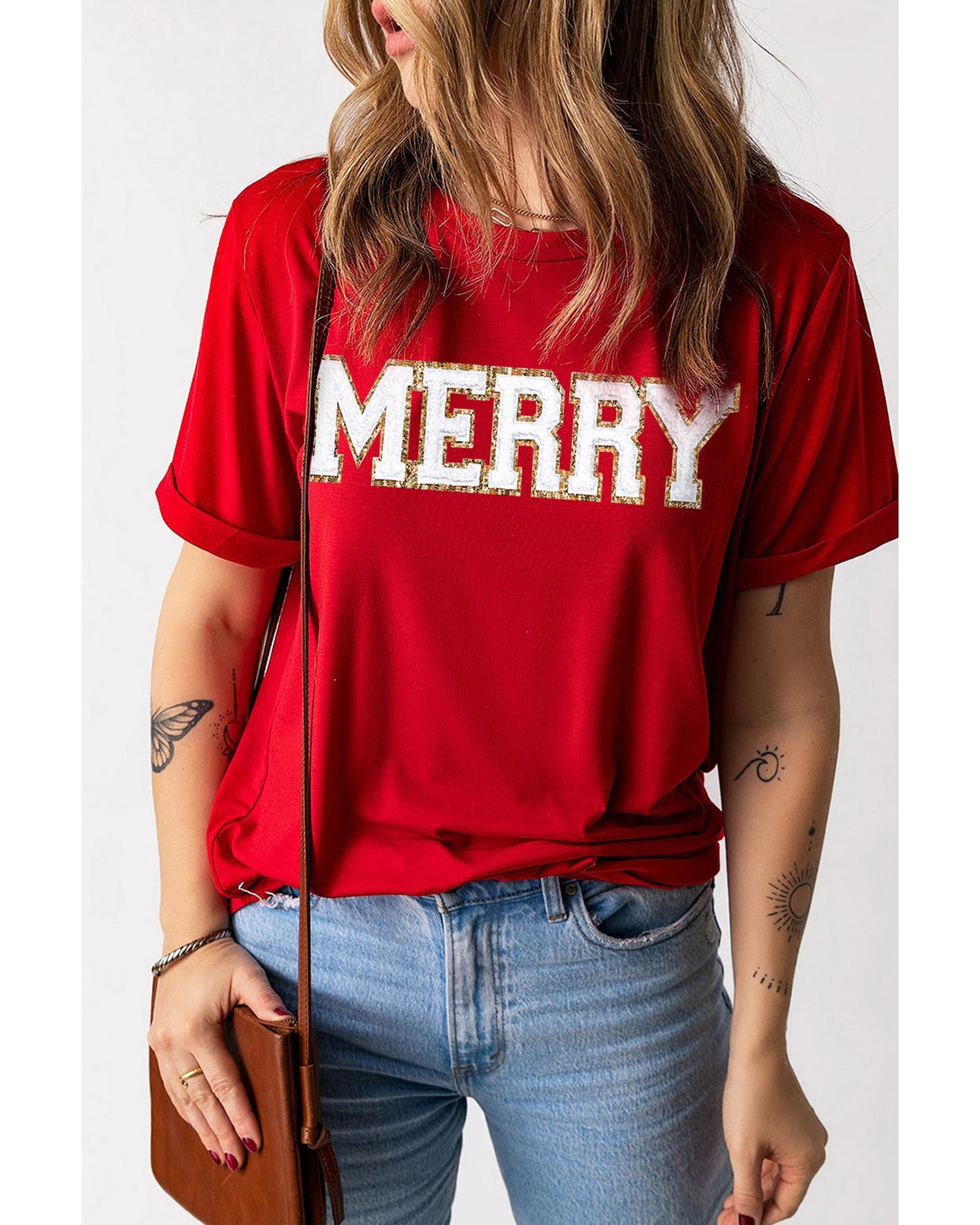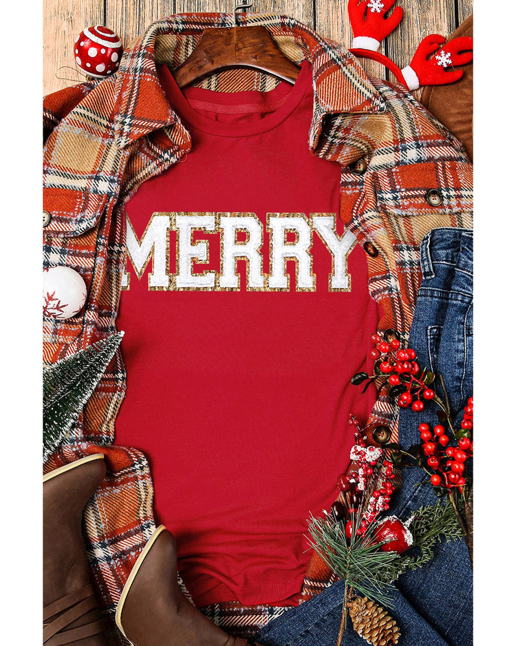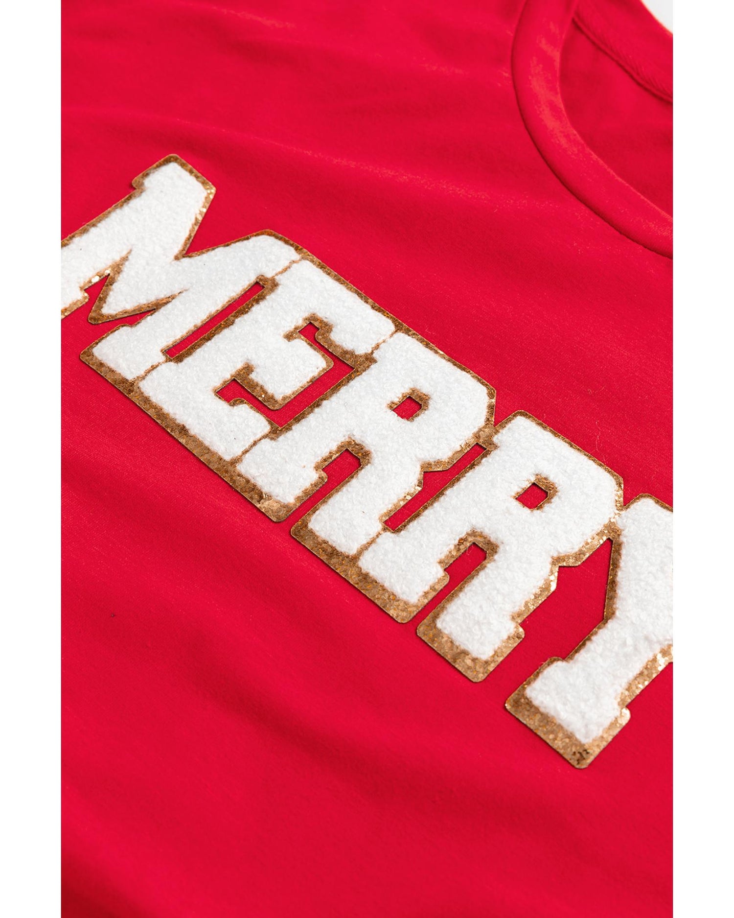Red Christmas MERRY Graphic Cuffed Sleeve T Shirt - S