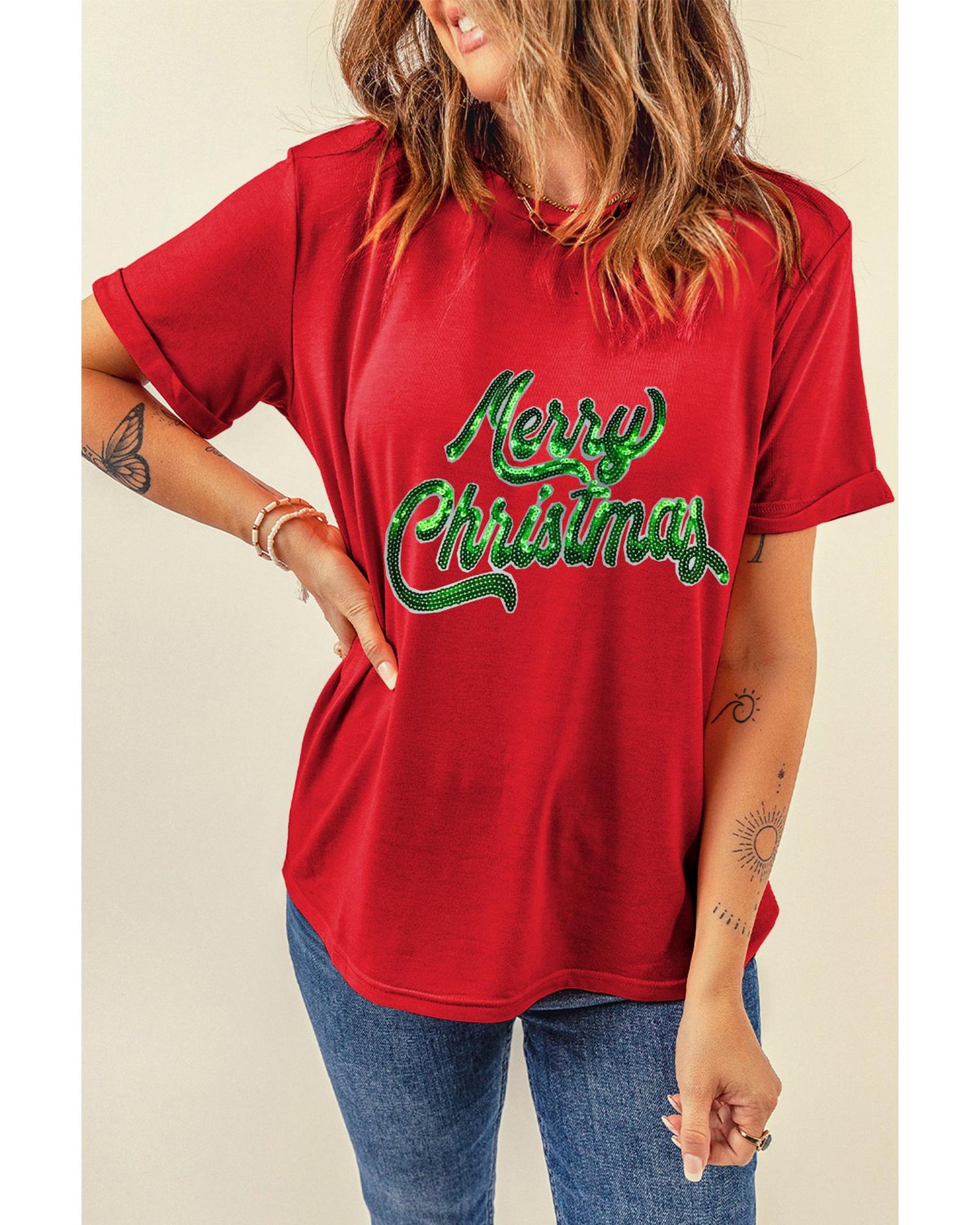 - Red Merry Christmas Graphic Crewneck T