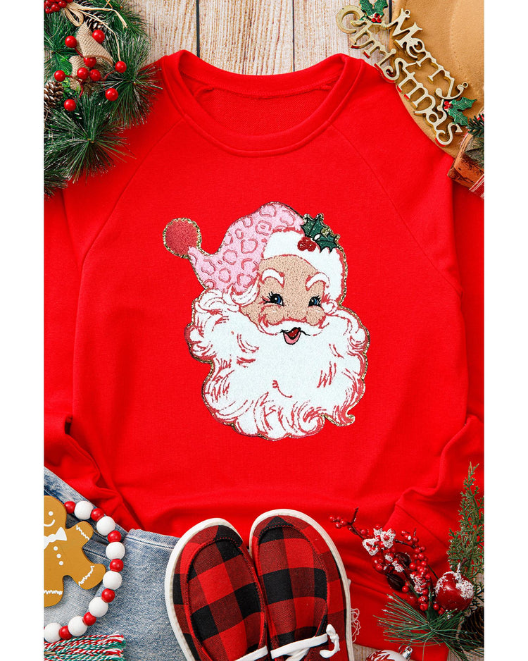 - Red Santa Claus Graphic Crewneck Raglan Sleeve Christmas Sweatshirt